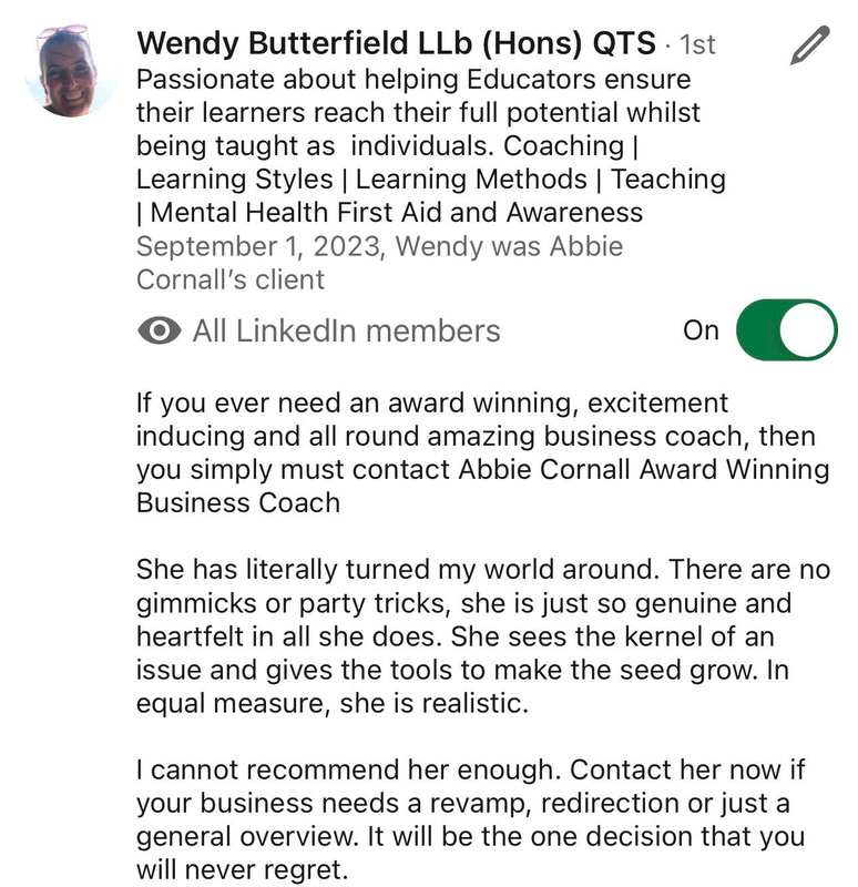 I’m a Business Mentor for Conscious and might we say “ever so slightly Rebellious” Leaders who are motivated to create a Business that works around their busy lives and NOT the other way around!
